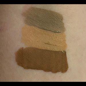 Trio of the sheer wisdom serum shadows from Butter London. These are new and unused (I used my own set for the swatched, FYI). Shades in trio are driftwood (top in swatch), sepia tan (middle) and maple wood (bottom).
