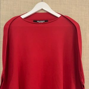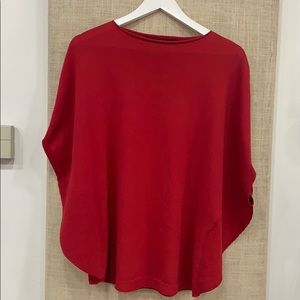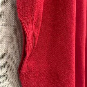 Stunning red weave with hidden side arm holes and collar lapse-seam that can fold over front or back.