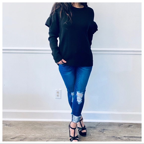 Beautiful ruffle sleeves from Paris sweater this is a soft viscose blend