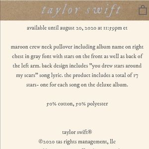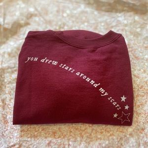 taylor swift SUPER RARE SOLD OUT LIMITED EDITION maroon “ you drew scars around my scars “ maroon red sweatshirt sweat shirt pullover pull over sweater top in SIZES LARGE L & EXTRA LARGE XL