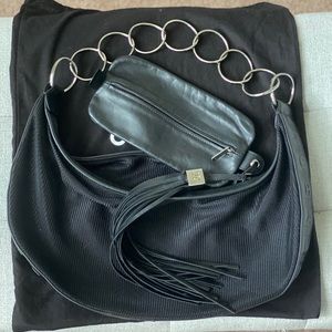 Chanel Vintage mesh and leather tassel hobo bag in good condition. The bag features an oversized chain link shoulder strap of silver metal with a leather tassel CC zipper pull. Shape trimmed with black leather embossed with the Chanel lettering and logo. Slight signs of use . Comes with dutbag and pouch . Please check and zoom the photos for more details .