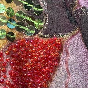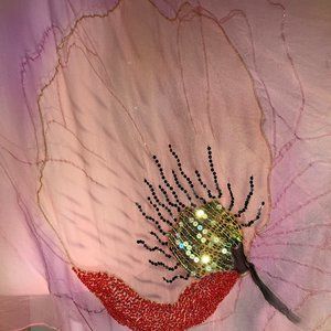 This gorgeous wrap is a one of a kind sheer wrap and with butterfly sleeves. Front is open so it's easy to slip on and off. There are sequins & beads that form a flower imaged into material also gold & silver metallic threads in this wrap. Absolutely stunning, multi colors so it can pair with many outfits. Can be worn over a swim suit as a Cover-up or it is elegant over a blouse or dress. nonsmoking house. Note:There is a white shirt shown in picture under this coverup is not included.