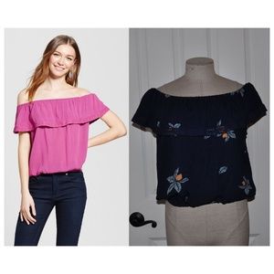 NEW Navy Floral Off-Shoulder Ruffle Tank Top XL