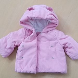 Baby Gap pink corduroy coat with bear ears 0-3 mos