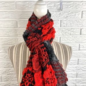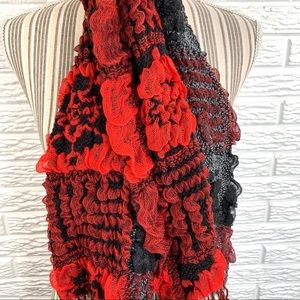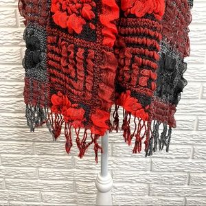 5/$25 Ruffled Patchwork Floral Scarf Black Red