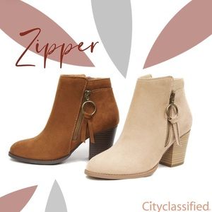 City Classified Zipper Beige Suede Heel Ankle Bootie 10