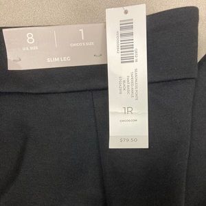 🎧Chico’s🎧Seasonless Ponte Tapered Ankle Pants features a zippered front with a button closure and 2 hooks. NWT Size 1 or equivalent to a US Size 8 Color: Black Sold Out / Out-of-Stock online.