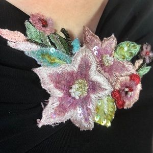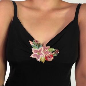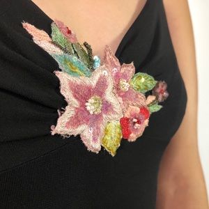 David Meister Black Cocktail Dress•Classy•Sophisticated•Sexy little black dress w/ embroider flower detail by chest area•Embroided Sequin•Cocktail