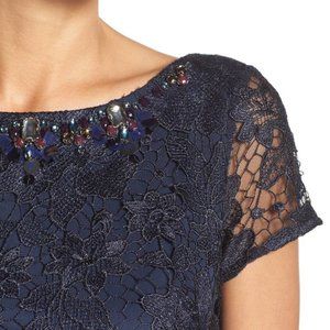 Adrianna Papell NEW Jewel Embellished Lace Gown with Mesh Godet Insets DressπHP