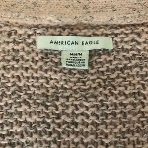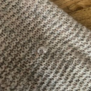 Size medium (first small and medium) light pink cardigan. Small pull in fabric in back right arm pictured. Only worn a couple times!