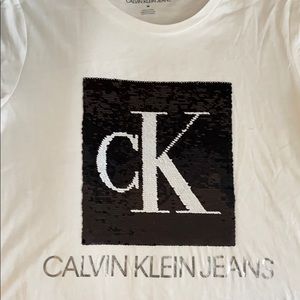 JUST IN BRAND NEW! CALVIN KLEIN WOMENS SEQUINED CK LOGO- MOVABLE SO YOU CAN HAVE THE SILVER SIDE UP OR THE BLACK SIDE! SO UNIQUE! SOFT COTTON BLEND!