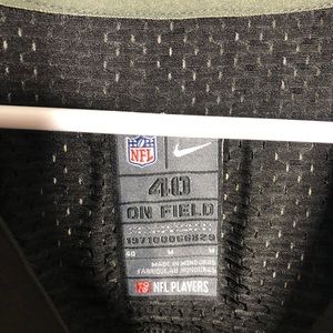 Black and yellow colors. 84 on the front, Brown and 84 on the back. Yellow stripes on the sleeves.