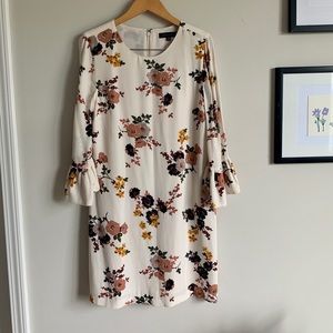 White/cream floral shift dress with peplum sleeves. Never worn and in perfect condition!