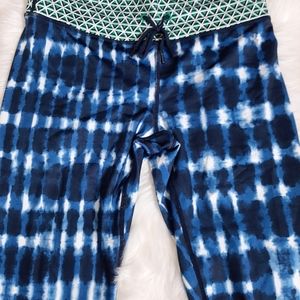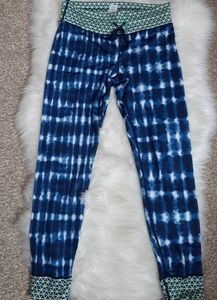 Green and white trim around ankles and waist