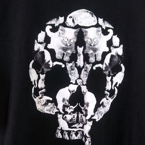 This unique T-shirt parodies one of Man Ray's most iconic images of nude women used to form a Skull. Graphic on Black T-Shirt uses images of kittens to form a Skull. Evocative & adorable. For cat lovers, artists & anyone who enjoys parodies. In great condition and size XXXL.