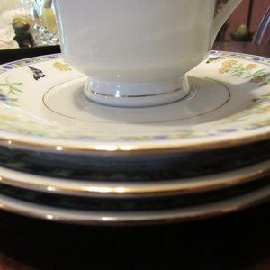 Vintage Victorian Porcelain Footed Floral Tea Set 3 Cups/4 Plates