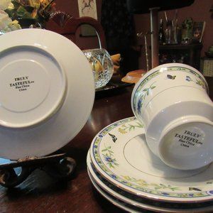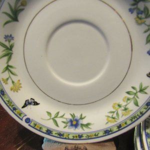 Delicate Yellow, Green & Blue Floral Pattern & butterflies with Matching Floral Band Accent