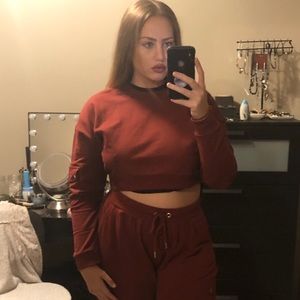 Only worn once, like new!! Sweatshirt only. Burgundy/Cabernet/deep red color