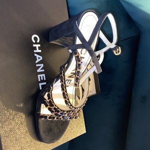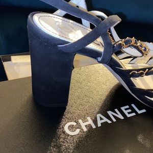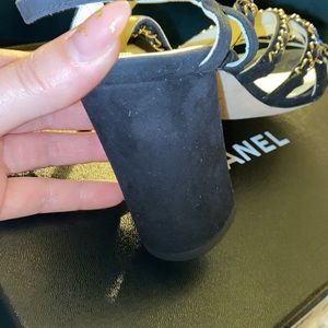 Chanel Black New Kid Suede 19p Strappy Chain Heels