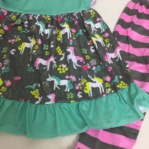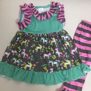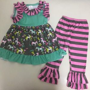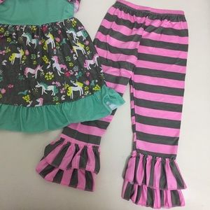 Unicorn cute ruffle sleeveless top pants set