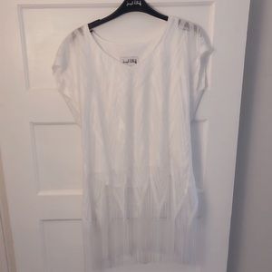 Super trendy NWT Joseph Ribkoff White lace & fringe blouse size 8. Perfect for festival wear, vacation wear or a night out. Please zoom in on manufacturer tags for more detailed info.
