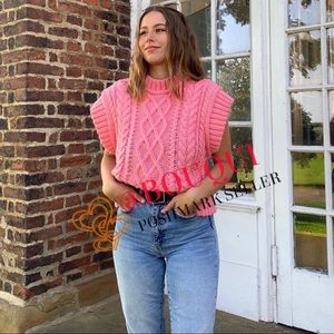 BLOGGERS FAV ZARA CABLE KNIT PINK VEST SWEATER