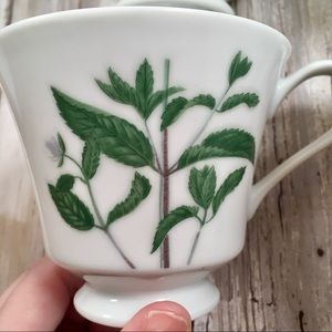 Beautiful set of four teacups m/coffee mugs with flowers and leaves design on front and back. Very pretty floral, botanical images. I think they are all wildflowers.