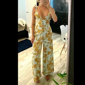 Free people light blue and gold yellow floral print jumpsuit. Size :0