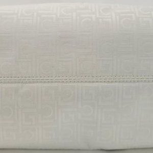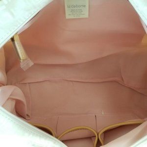Liz Claiborne White Heritage Mosaic Purse NWT. Darling carry-all with elegant muted LC logomarks imprinted on the sturdy canvas cloth. With leather handles and trim. Bag Dimensions 15.5" Wide X 9" Deep. From a pet-free/smoke-free home.