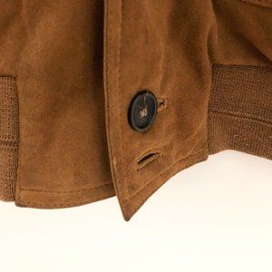 A stunning vintage suede bomber that is perfect for everyday wear! Very Parisian and unique:) A lovely and eye-catching suede in a deep camel brown color. Got so many compliments when I wore this! Great for fall & winter!