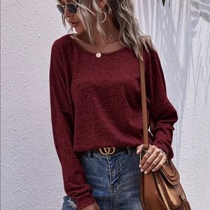 Twist back long sleeve sexy fall top burgundy red
