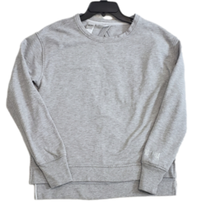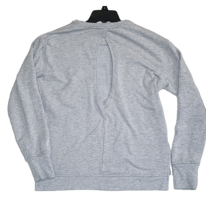 Crew neck pull over with keyhole back and a little bit of a hi lo hem.