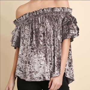 NWT OFF SHOULDER CRUSHED VELVET TOP