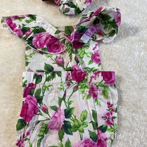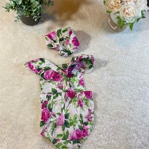 NWT - brand new never used super cute flowery baby girls flowery romper back is open super cute cross back headband size: 12m brand: boutique