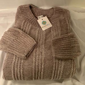 Boho Blu Crewneck long sleeve sweater. Ribbed collar, cuffs, and hem area. Loose fit. 100% Polyester. Very plush comfy sweater. Dry clean only. New. Great sweater to wear with boots for the fall, and winter.