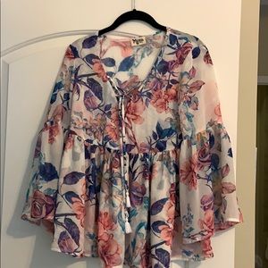 Show me your mumu S bell sleeve with lace up