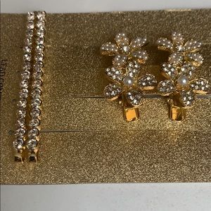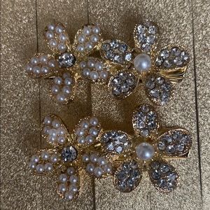 Hair clips/ pins. Gold with stones and some pearls on clips. Natasha clips 2 long bobby pins. 2 floral stones and pearl clips.