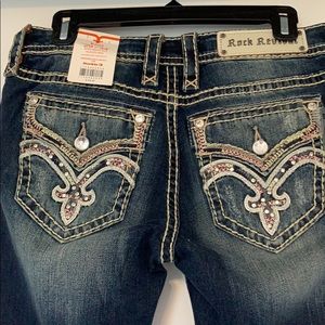 Women’s Rock Revival Jeans Boot Cut studded with white stitching. KLANDI B201. Designed exclusively for Buckle