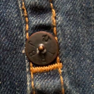 Trucker jacket purchased from the TR store in NY. Vintage! This stitch might not be made anymore. Looks to be a dark wash kind of blue.