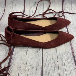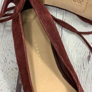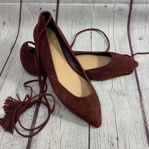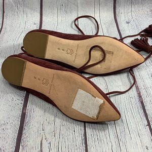 Loeffler Randall Wine Burgundy Tassle Ankle Strap Suede Penelope Flat SZ 6B