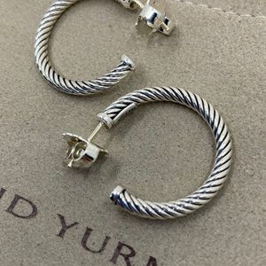 David Yurman Sterling Silver Small 1' Inch Classic Cable Hoop Earrings