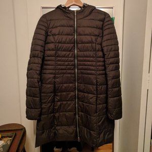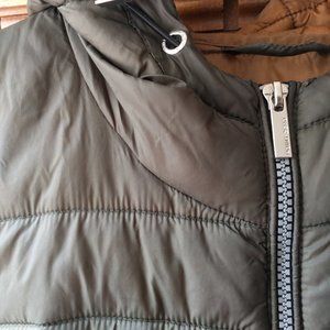 lk+,lhbkhuo+oljklkjl+kjl.k+Military green quilted double zip front coat with hood