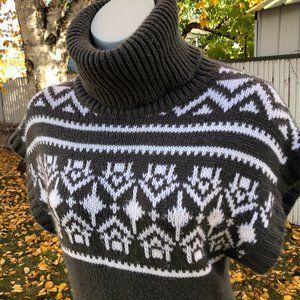 Loose cap sleeves keep you cool against the turtleneck, falls about mid-thigh length (I'm 5'10).