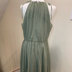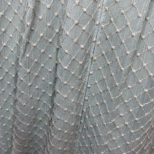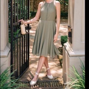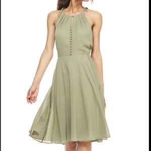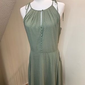 Texture tops the list of 'to loves' for this embroidered-chiffon dress featuring a crisply pleated neckline, button-front detailing and tied shoulder straps.