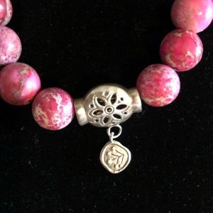 Adjustable sliding clasp on a cord with Jasper (fuchsia) bead and .925 Sterling silver