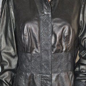 Vintage Gian Mori Black Leather Duster Jacket 42 8