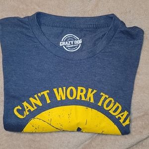 1- NWOT Crazy Dog Distressed Blue/ Yellow T-Shirt Large. Front says "CAN'T WORK TODAY, MY ARM IS IN A CAST" Crazy Dog T-shirt branded tees are designed and printed in the USA.100% Preshrunk Cotton. Super Soft Tee. Tagless tee