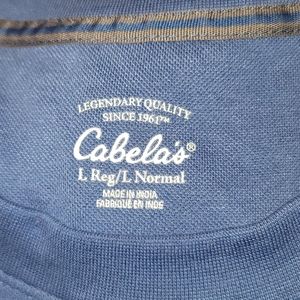 1- NWOT Cabela's Blue T Shirt Size L. 60%Cotton 40%Polyester. Nice heavy wrinkle free shirt. Heathered colors: 60% cotton/40% polyester