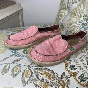 Sanuk Pink White Polka Dots Sidewalk Loafers Sz 9