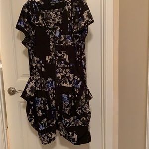 City Chic zip front tunic dress. Size XL/22. Black, blue, and white floral with oversized pockets.